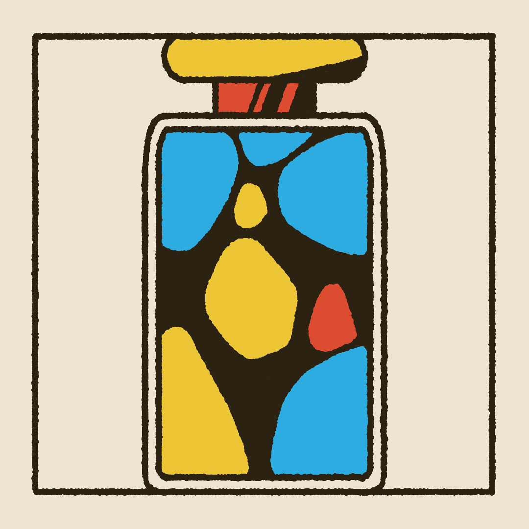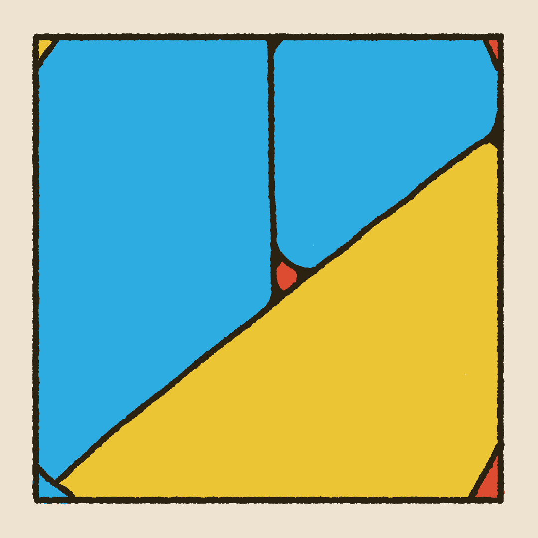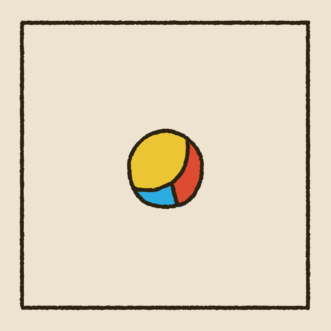 When designing, I used a textured brush to bring interest to simple shapes and help convey a cartoon or hand drawn feel. A triadic color palette using the primary colors makes the piece feel vibrant, lively, and even a bit childish. While using similar values in the core three colors, and using off-white and off-black which lean towards the yellow, keep it cohesive and give it some balance.