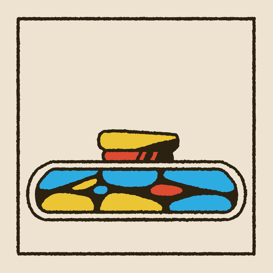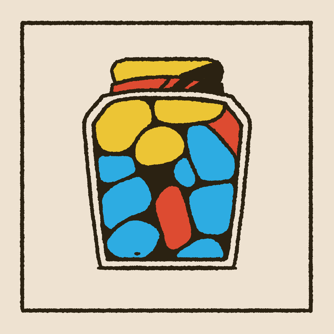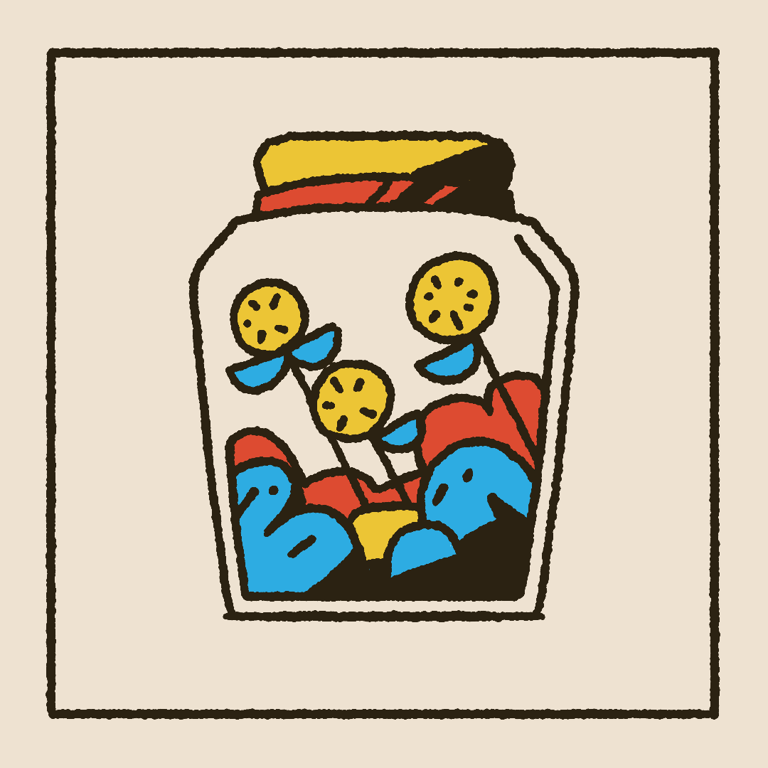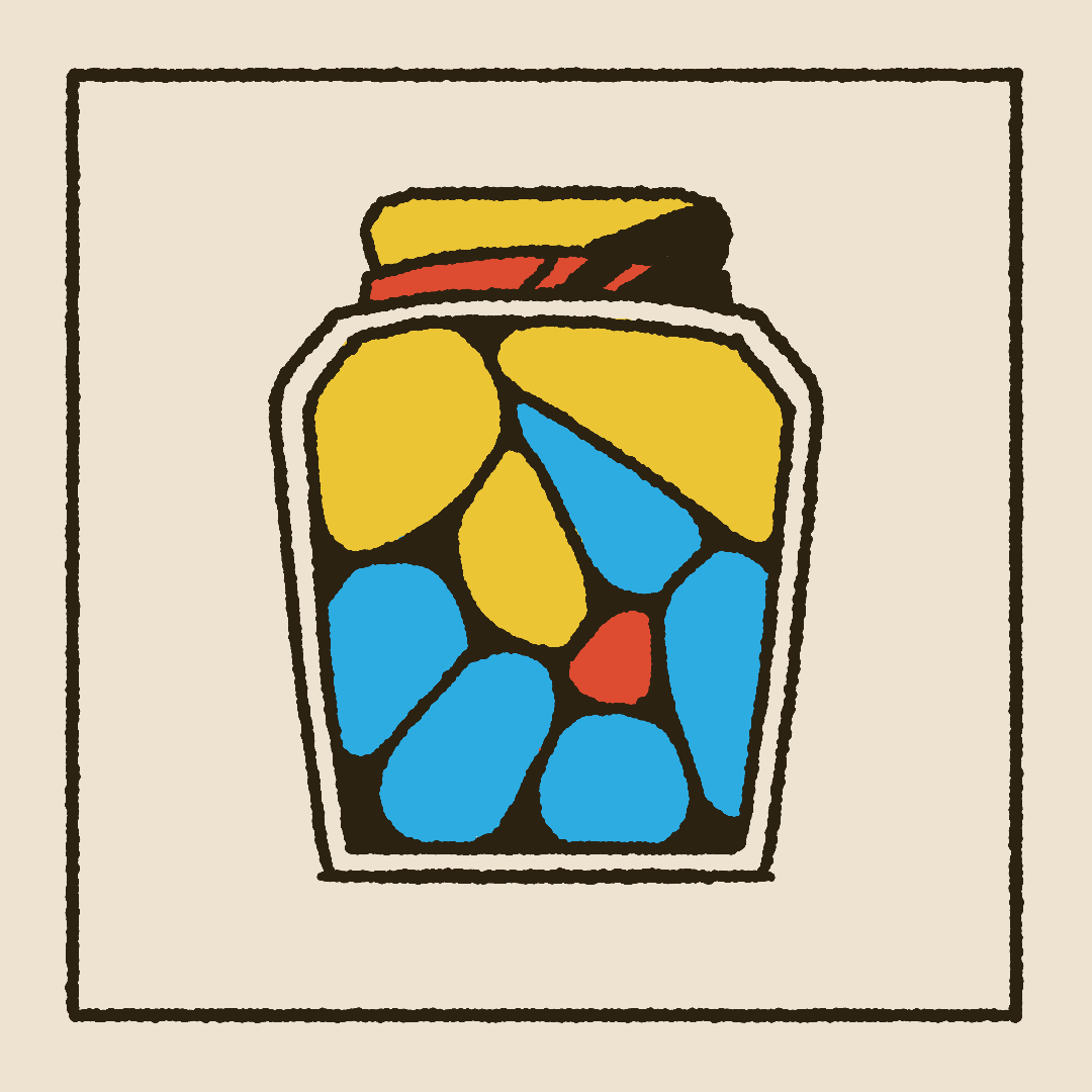 When designing, I used a textured brush to bring interest to simple shapes and help convey a cartoon or hand drawn feel. A triadic color palette using the primary colors makes the piece feel vibrant, lively, and even a bit childish. While using similar values in the core three colors, and using off-white and off-black which lean towards the yellow, keep it cohesive and give it some balance.